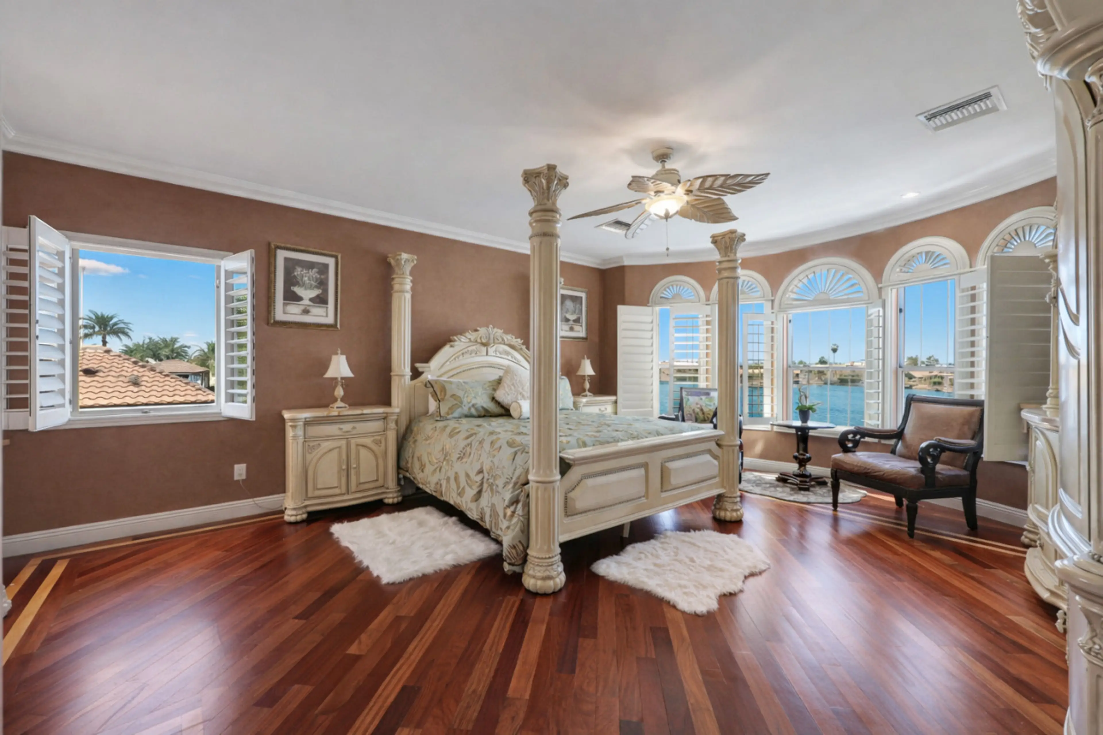 Peaceful Arrowhead Lakes custom home with spectacular lake, and mountain views is a true dream. Private gated property, professionally landscaped, high ceilings foyer, two master suites, one at the second floor with Juliette balcony and one master at the first floor. The gourmet, fully stocked k...